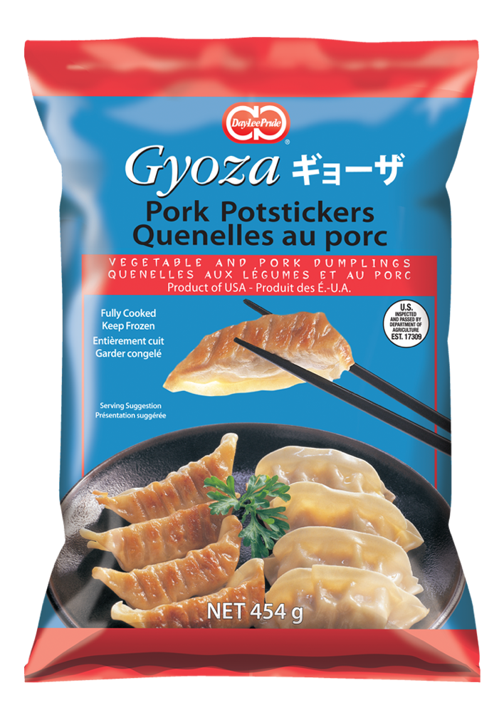 Ingredients: Filling: Cabbage, Pork, Onion, Sesame seed oil, Salt, Soy sauce (water, wheat, soybeans, salt), Sugar, Spices, Garlic. Dough: Enriched wheat flour, Water, Salt, Soybean oil. Dusted in potato starch.